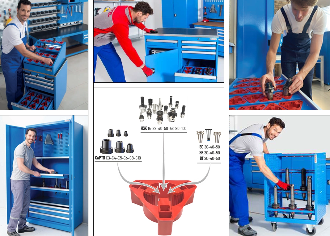 HSK (16–32–40–50–63–80–100), CAPTO (C3–C4–C5–C6–C8–C10), ISO 30–40–50, SK 30–40–50 ve BT 30–40–50 gibi farklı takım standartlarına tam uyum sağlayan modüler sistemleri sayesinde tüm CNC tezgâh tiplerine entegre olur.