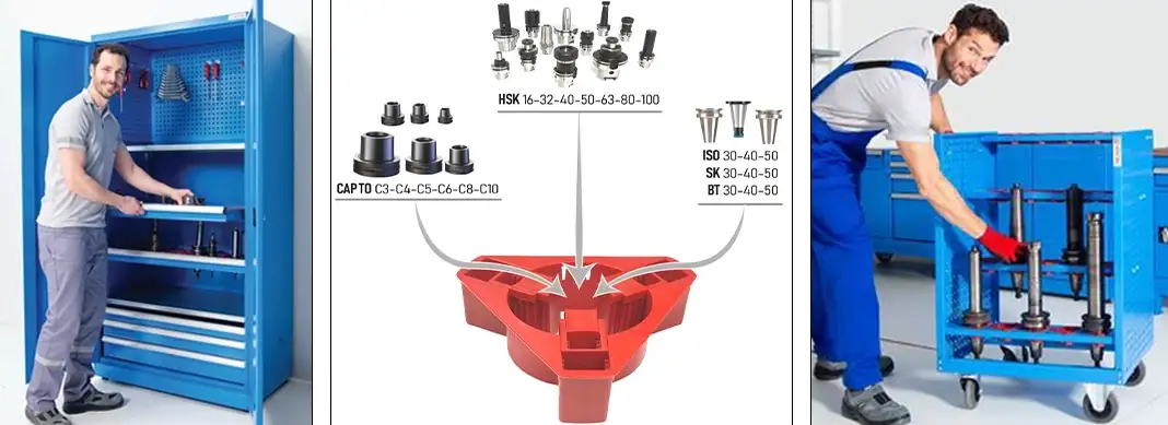 HSK (16–32–40–50–63–80–100), CAPTO (C3–C4–C5–C6–C8–C10), ISO 30–40–50, SK 30–40–50 ve BT 30–40–50 gibi farklı takım standartlarına tam uyum sağlayan modüler sistemleri sayesinde tüm CNC tezgâh tiplerine entegre olur.